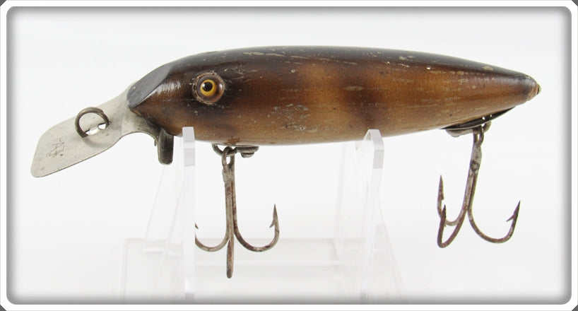 This is a nice old The Bite Em Bate Co Striped Lipped Wiggler lure that was sold on Tough Lures! Vintage and antique fishing lures are added for sale often so keep checking back! I buy old lures so feel free to contact me if you have any to sell.