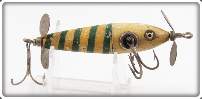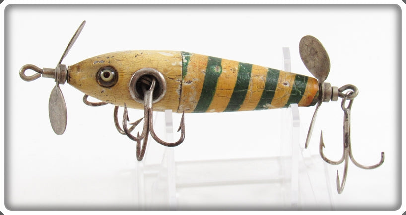 This is a nice old The Charmer Minnow Co White & Green Charmer Minnow lure that was sold on Tough Lures! Vintage and antique fishing lures are added for sale often so keep checking back! I buy old lures so feel free to contact me if you have any to sell.