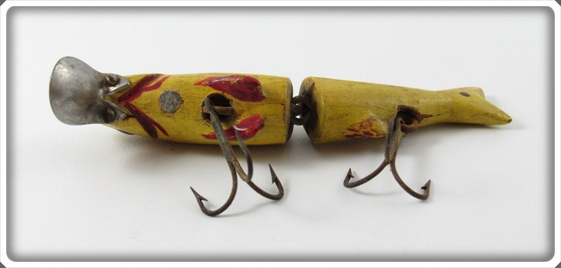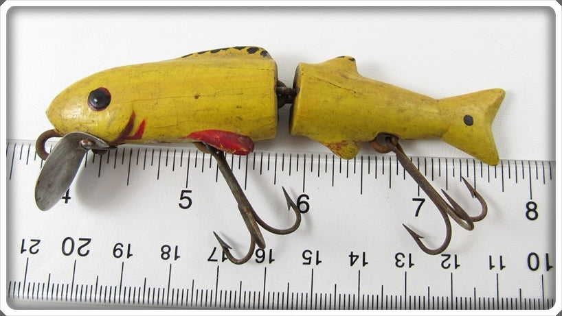 This is a nice old Yellow Illinois River Minnow Type lure that was sold on Tough Lures! Vintage and antique fishing lures are added for sale often so keep checking back! I buy old lures so feel free to contact me if you have any to sell.