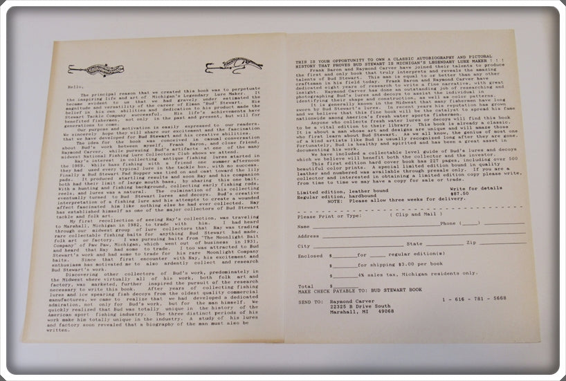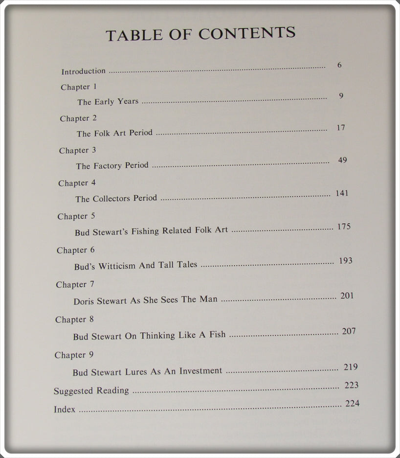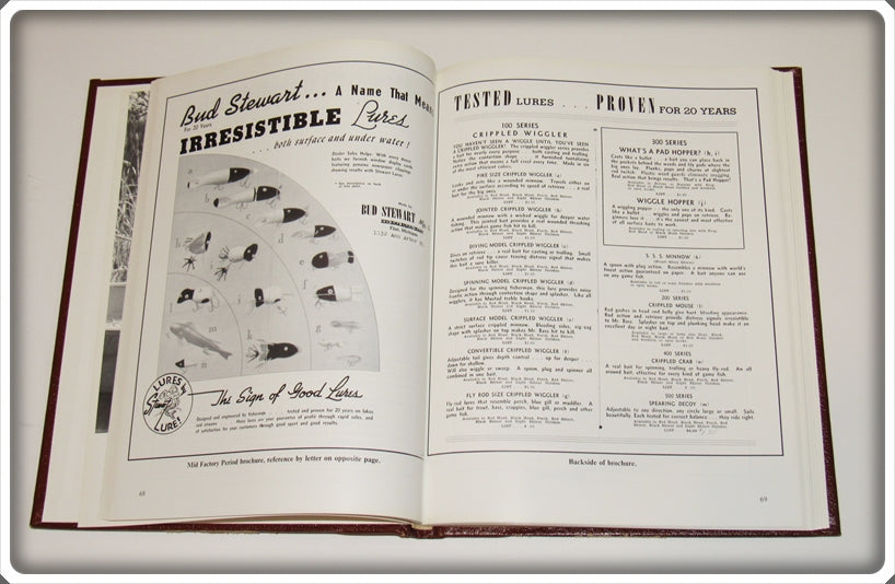 This is a nice old Bud Stewart Michigan's Legendary Lure Maker Identification Guide Book that was sold on Tough Lures! Vintage and antique fishing lures are added for sale often so keep checking back! I buy old lures so feel free to contact me if you have any to sell.