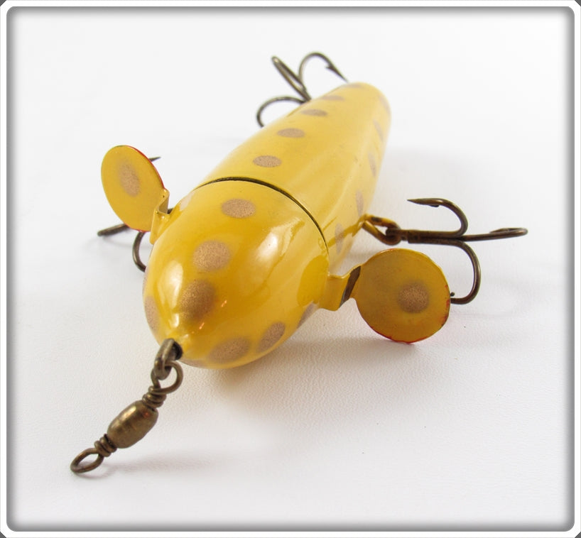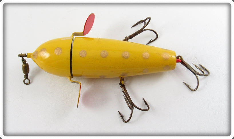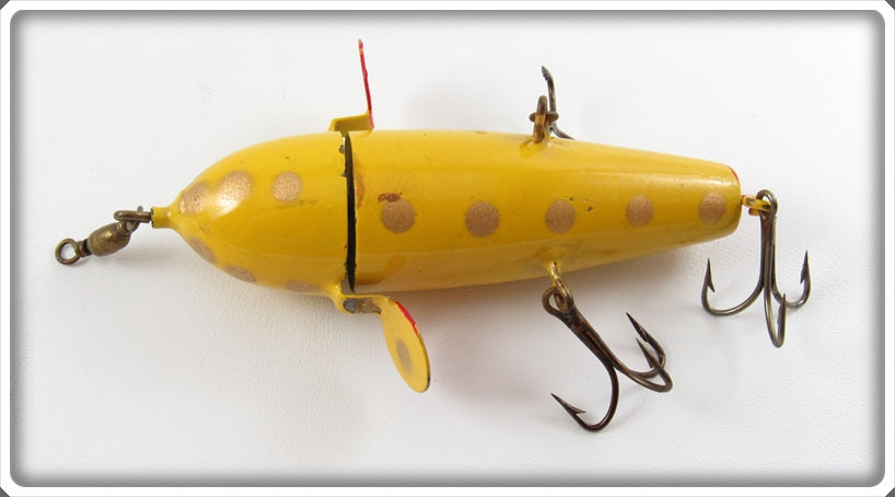 This is a nice old UTK Yellow Gold Spots Success Spinner lure that was sold on Tough Lures! Vintage and antique fishing lures are added for sale often so keep checking back! I buy old lures so feel free to contact me if you have any to sell.