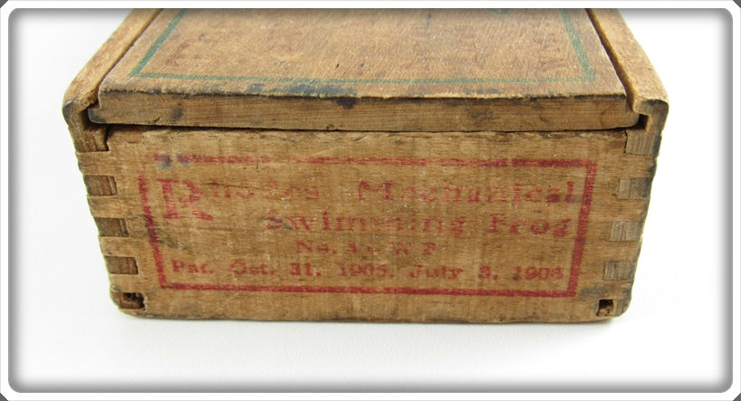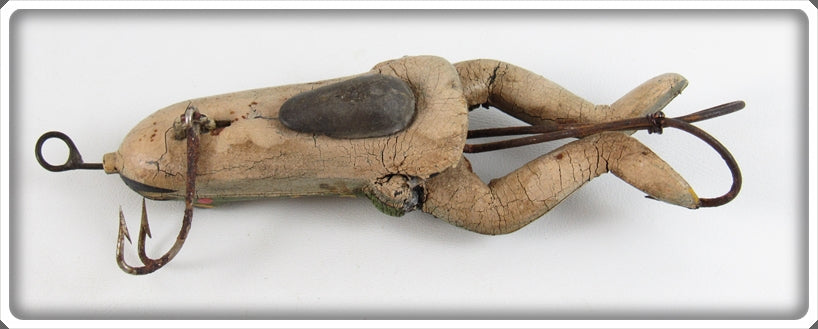 This is a nice old William Shakespeare The Rhodes Mechanical Swimming Frog lure that was sold on Tough Lures! Vintage and antique fishing lures are added for sale often so keep checking back! I buy old lures so feel free to contact me if you have any to sell.
