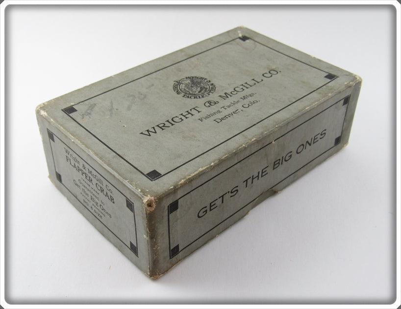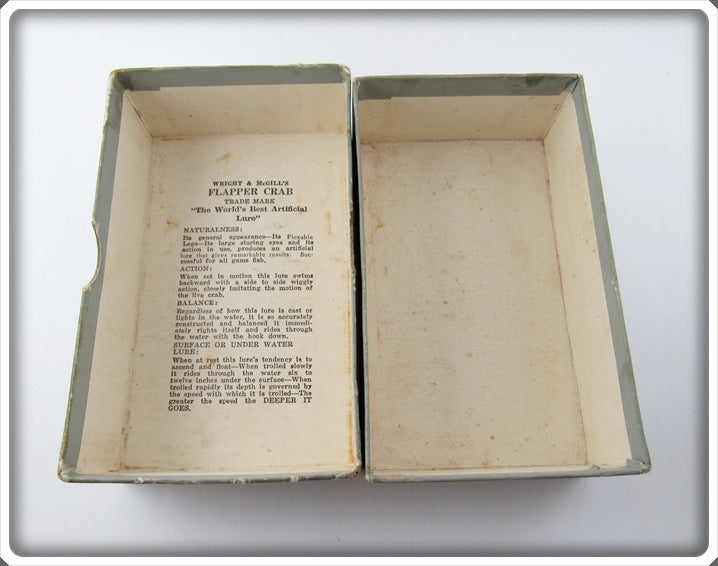 This is a nice old Wright & McGill Flapper Crab lure box No. 6 that was sold on Tough Lures! Vintage and antique fishing lures are added for sale often so keep checking back! I buy old lures so feel free to contact me if you have any to sell.