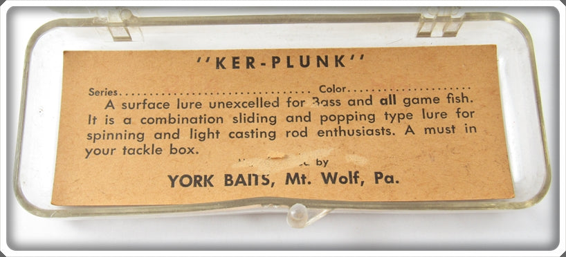 This is a nice old York Baits Shad Back Ker-Plunk lure that was sold on Tough Lures! Vintage and antique fishing lures are added for sale often so keep checking back! I buy old lures so feel free to contact me if you have any to sell.