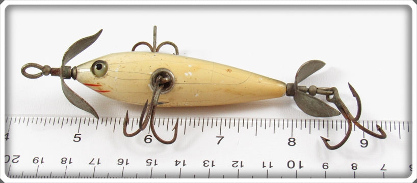 South Bend White Blended Green Back Early Three Hook Underwater Minnow